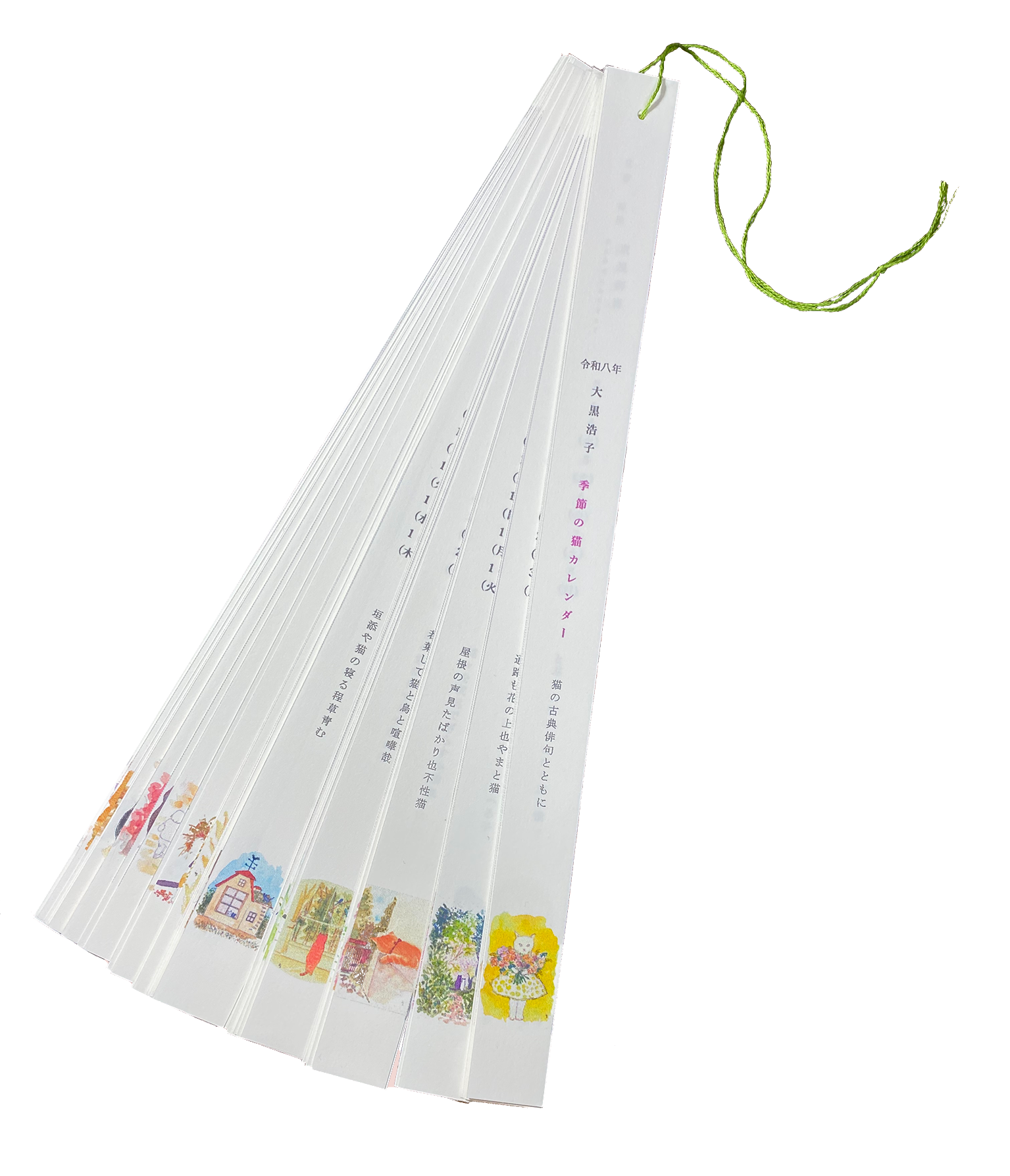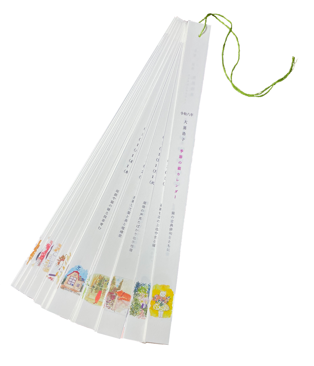 大黒浩子さんの猫の作品による季節感あふれる令和8年度のカレンダー です。